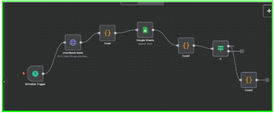 Lead Acquisition: The workflow executes a scheduled call to an external service (smartleads) to automatically pull new lead batches.